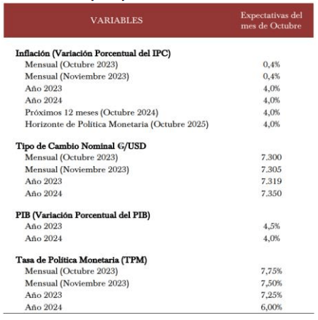 7.305. Así también, para fines del 2023, los agentes económicos prevén que el tipo de cambio se